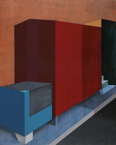趙新宇從以往的作品中提取出了作品畫面的三個基本空間模型,“凹”“凸”“平”,并且在此次個展作品當中非常刻意的以豎構圖來強化這一理式概念,甚至試圖探究以往作品如果以一種“剩余”的狀態(tài)呈現(xiàn),意義生成的核心會發(fā)生怎樣的轉(zhuǎn)變?!妒彝?1垂直,傾斜》右下角垃圾箱輪子的處理,是以暗色塊暗示了原物的形態(tài),并沒有再做深入的刻畫,而實際上這一形態(tài)往往是作品底層的保留;《室外#3》右上部,你可以說是割破了的畫面,或者是基于無意識的,總之對于結構穩(wěn)定的畫面而言,像極了一次意外的產(chǎn)物。在某種意義上它超越了象征界,也即超越了經(jīng)驗所能夠涵蓋的內(nèi)容。但是新作當中似乎更有新的趨向,比如《室外#3》和《室外#4》兩件作品,一件觸及畫面的變形,另一件暖色調(diào)的嘗試則引發(fā)了某種藉里科式的憂郁,或許這是匱乏和剩余的并發(fā)癥,某種飄散的內(nèi)容甚至帶給人一種訴諸作品本身相反的感受。