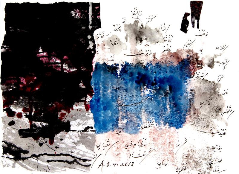他的這種藝術(shù)實(shí)踐也可追溯至維克多·雨果(Victor Hugo)的繪畫,或進(jìn)一步,追溯至對其產(chǎn)生重大影響的超現(xiàn)實(shí)主義者那 —— 眾所周知,他們通過詩歌打開人類的感性,就像蘇菲主義,讓人沉浸在充滿詩意、超越一切的忘我境界。一切既相關(guān),又都未完成。阿多尼斯的每件拼貼-繪畫-手稿,都是詩人向我們發(fā)出的一個小小宣言,呼吁一種更開放、更含蓄、更微妙、更深刻、更感官、更有思想、更個性化、更政治化、更即時、更能持久的詩歌藝術(shù)。