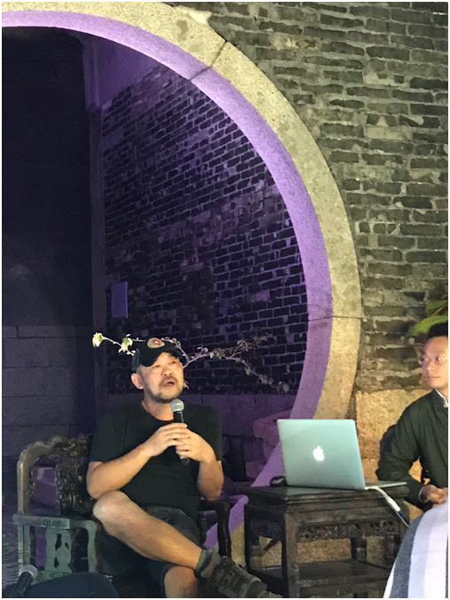 本次講座活動(dòng)是由藝術(shù)家、策展人楊勇主持,兩位特邀嘉賓分別是中山大學(xué)傳播與設(shè)計(jì)學(xué)院的教授馮原(同時(shí)擔(dān)任2011年深圳香港/城市雙城雙年展學(xué)術(shù)委員會(huì))以及現(xiàn)任Collect總監(jiān)伍常(曾為佳士得拍賣行美術(shù)學(xué)院亞洲課程主管)。在粵港澳大灣區(qū)的城市群背景下,主持人從大鵬所城的歷史及賴氏家族影響遺留下的民俗,講座嘉賓則分別從各自所處的城市—香港、廣州為著眼點(diǎn)展開學(xué)術(shù)討論。