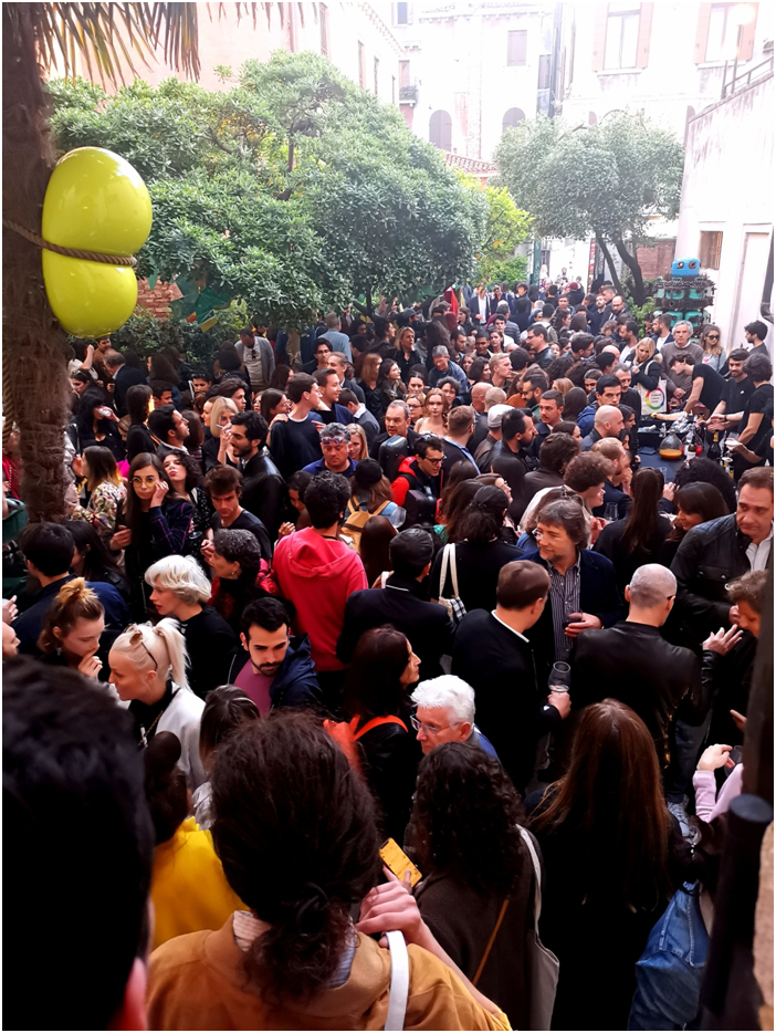 本屆威尼斯藝術(shù)雙年展覽藝術(shù)總監(jiān)為拉夫?魯戈夫(Ralph Rugoff),展覽名為“愿你生活在有趣的時(shí)代"(May You Live in Interesting Times)。全球藝術(shù)事務(wù)基金會(huì),是荷蘭非營(yíng)利組織,負(fù)責(zé)歐洲文化中心(European Cultural Centre)在莫拉宮和本博宮等五個(gè)主要展館主辦的大型國(guó)際展,邀請(qǐng)了世界各地優(yōu)秀藝術(shù)家參展,展覽現(xiàn)場(chǎng)人山人海,人流量大大超過(guò)以往,參觀者大多是來(lái)自世界各地藝術(shù)家與藝術(shù)愛(ài)好者、藏家、畫(huà)廊、策展人、及藝術(shù)機(jī)構(gòu)等。
