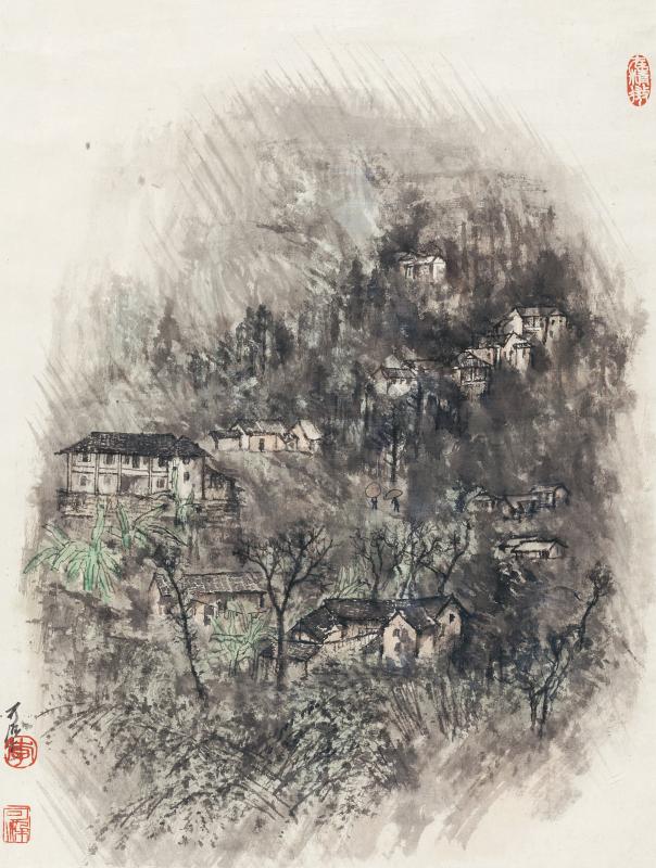 作者:李可染 作品名稱:山村煙雨圖