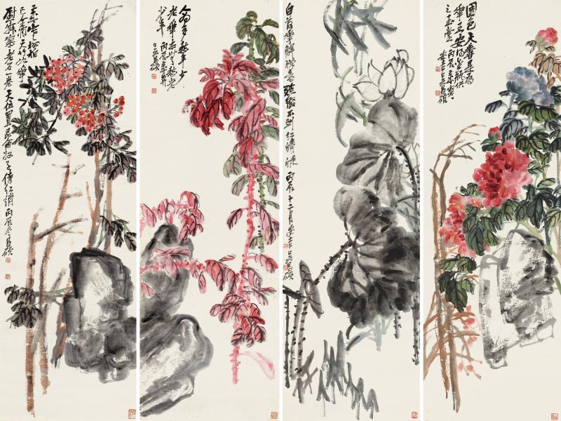 作者:吳昌碩 作品名稱:花卉四屏