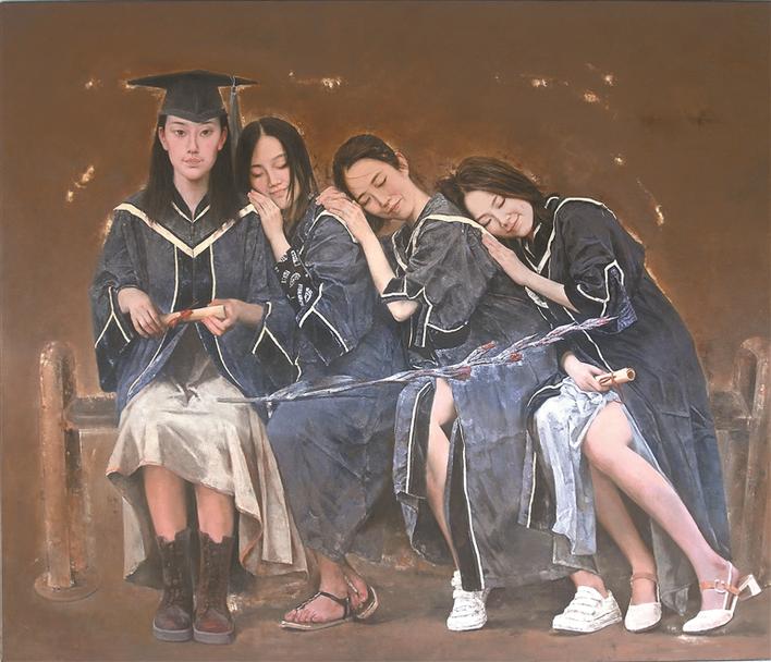 比如,董小明的《真水無(wú)香》展現(xiàn)了他在水墨領(lǐng)域持續(xù)不斷的探索精神;梁宇的《前方的信號(hào)》以鐵路元素為題材,畫(huà)面凝練,意喻強(qiáng)烈,催人奮進(jìn);其加達(dá)瓦的版畫(huà)《對(duì)眸》描述了母親與孩子彼此注視的溫暖時(shí)刻;陸聲設(shè)的版畫(huà)《中國(guó)電子一條街》,對(duì)焦深圳華強(qiáng)北普通人的面孔;余澎的作品《和而不同》意蘊(yùn)深遠(yuǎn),以視覺(jué)形象對(duì)和而不同做了注腳;劉文的《暢想青春》描述了四個(gè)女孩拍攝畢業(yè)照的溫馨情景,展現(xiàn)了青春的活力;吳登軍的《SZ城中村》展現(xiàn)了城中村井然有序的場(chǎng)景;楊光的《未來(lái)石》表達(dá)了藝術(shù)家對(duì)未來(lái)的大膽想象。