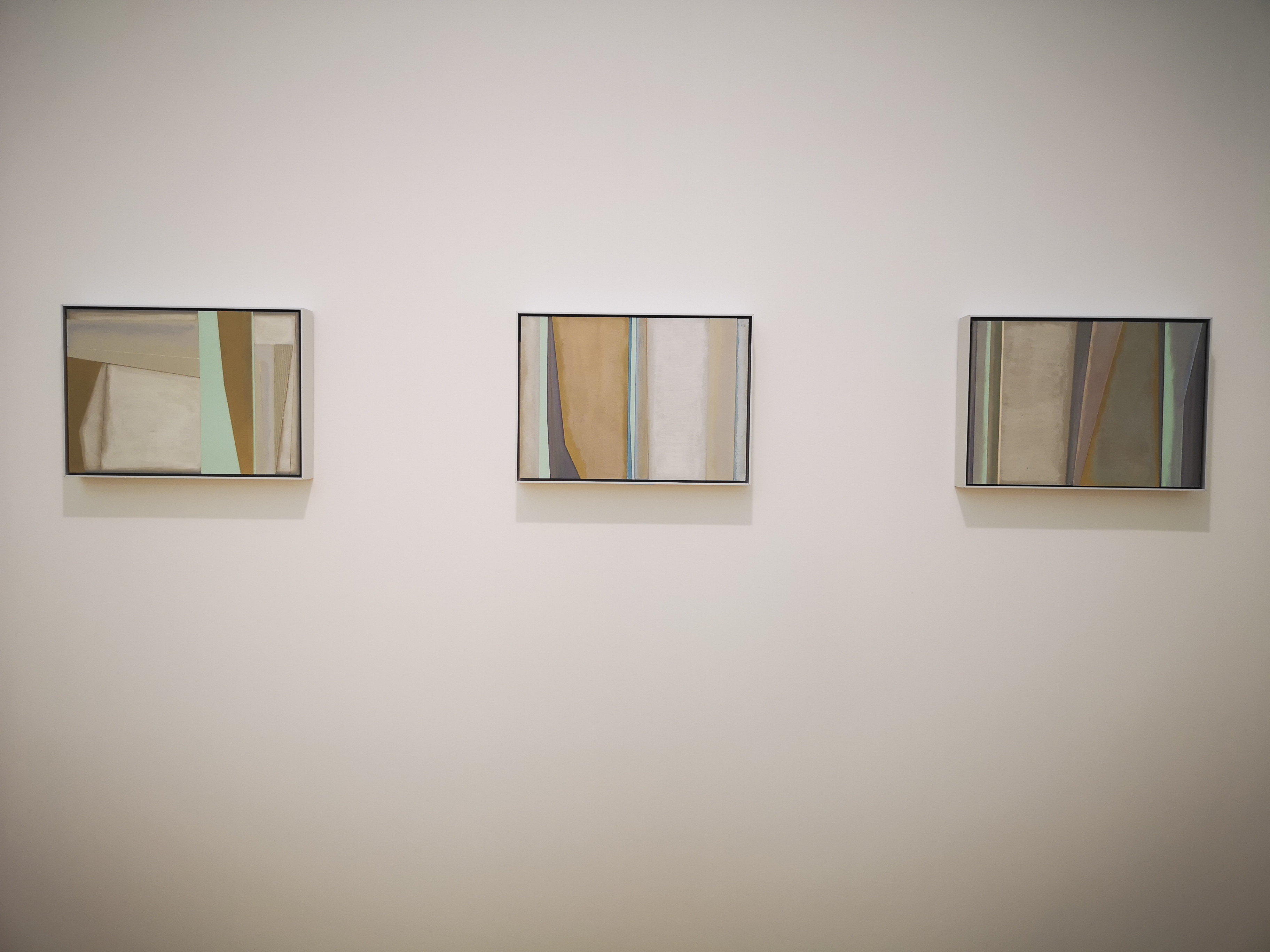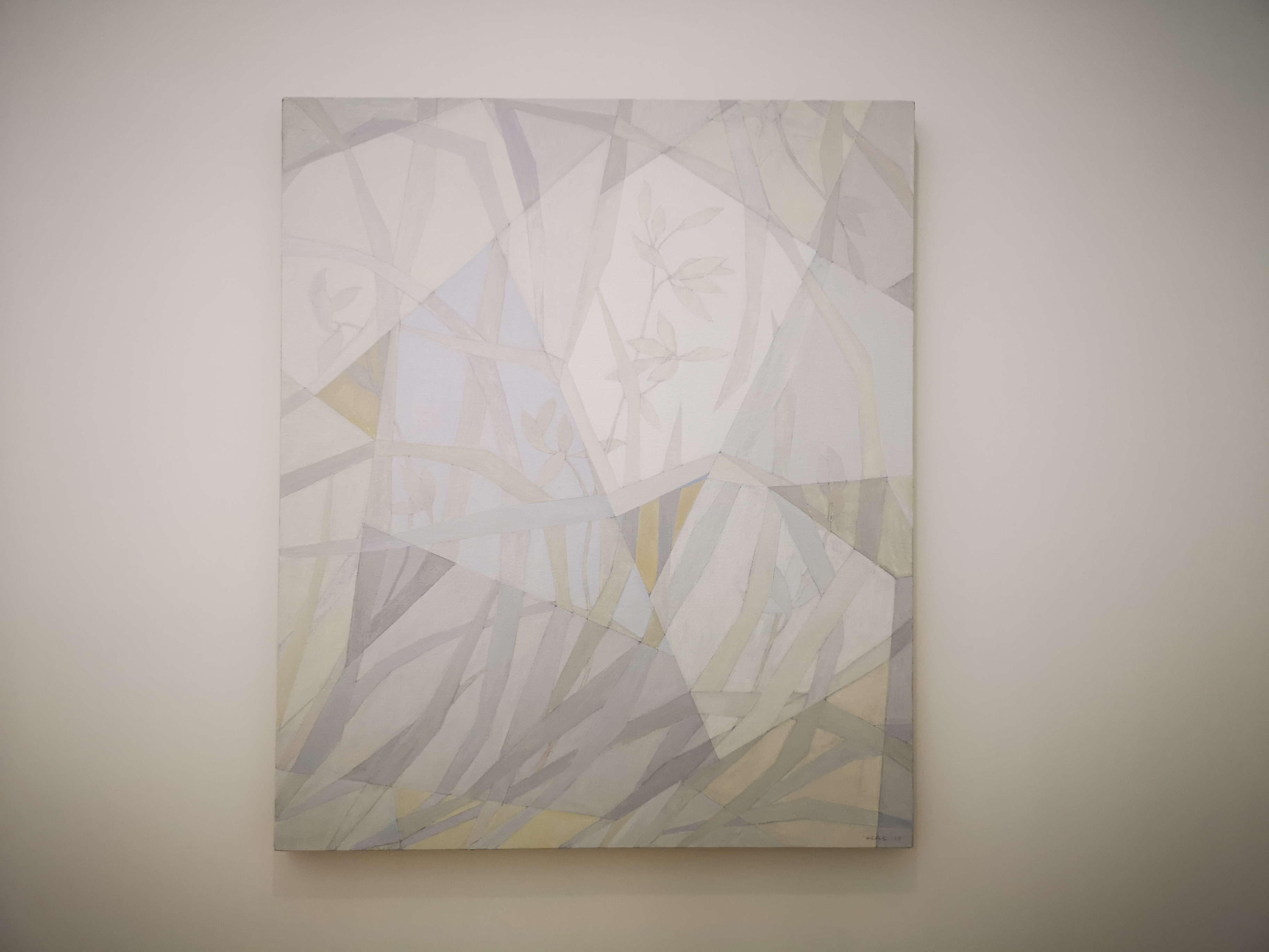 自2013年王豪開(kāi)始以水泥作為個(gè)人創(chuàng)作媒介以來(lái),三個(gè)系列“寂”、“樸”、“遠(yuǎn)”并行展開(kāi)?!凹拧焙汀皹恪睆?qiáng)調(diào)水泥作品的靜態(tài)特征,不論是單件作品還是多件組合作品,在水泥材料的細(xì)微變化與色塊搭配上,力求傳達(dá)出一種寧?kù)o、樸拙的整體氣息;“樸”系列在形式上更為豐富,不僅嘗試使用斜線、三角形乃至圓形,還探索富于中國(guó)古典韻味的形式表達(dá);“遠(yuǎn)”系列的名稱則來(lái)源于中國(guó)傳統(tǒng)山水繪畫(huà)所特有的透視技法“三遠(yuǎn)”概念,這系列作品意圖通過(guò)畫(huà)面的動(dòng)態(tài)表現(xiàn)打破二維空間限定,拓展平面繪畫(huà)的深度與廣度,從美學(xué)意境上與高遠(yuǎn)、深遠(yuǎn)、平遠(yuǎn)相融合。
