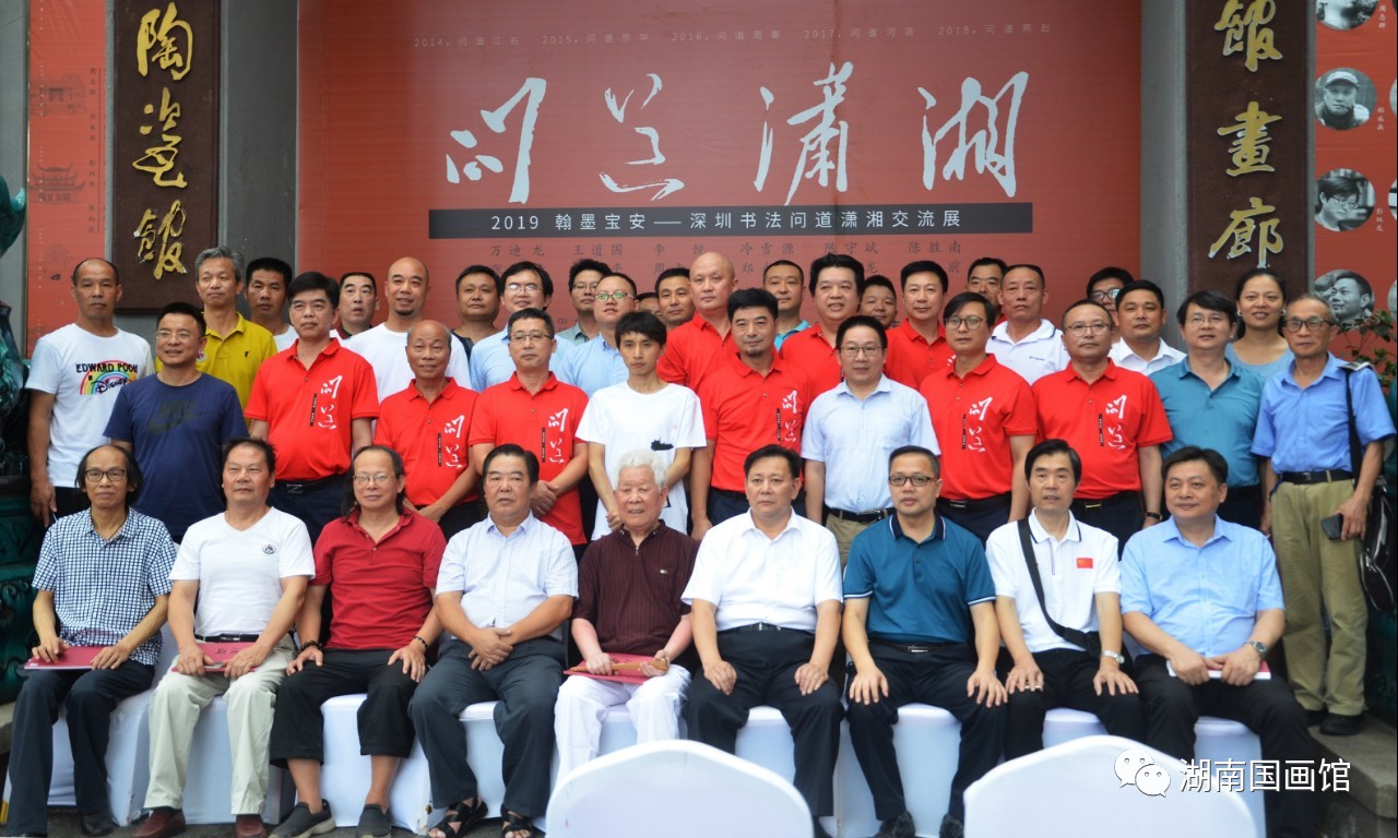 此次“問道瀟湘”是由深圳寶安書社、深圳寶安公共文化服務(wù)中心策劃的品牌活動,是繼問道江右、問道京華、問道周秦、問道河洛、問道燕趙之后的第六次“問道”活動,旨在帶上作品,通過展覽和交流,虛心請教,增進(jìn)交流。展覽展出了王道國、萬迪龍、陳勝南、李銳、張琦、張綏平、鄭永兵、冷雪源、周志群、陳守斌、彭雙龍、蔣向前12位深圳書法家的100多幅書法精品,涵蓋篆、隸、楷、行、草、篆刻,氣象正大、功力深厚、風(fēng)格多樣、各有專長,既有切合時政的政治主題,也有自撰詩詞聯(lián)句和題跋作品;既有湖湘歷史題材佳作,也有深圳本土題材作品;既有丈二巨制,又有平尺小品。展覽的亮點是主展廳的九件丈二巨幅作品,從《不忘初心》到《春天的故事》,從《岳陽樓記》到王冕《墨梅》,筆力沉雄,氣象博大,受到與會專家和觀眾的好評!