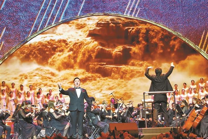 在盧向榮的慷慨激昂的朗誦中,青年歌唱家唱響了整部《黃河大合唱》。通過《黃河船夫曲》《黃河頌》《黃河之水天上來》《黃水謠》《河邊對口曲》《黃河怨》《保衛(wèi)黃河》《怒吼吧,黃河!》八個(gè)樂章,贊美中華民族堅(jiān)貞不屈、頑強(qiáng)抗?fàn)幍挠⑿蹥飧牛瑸橛^眾呈現(xiàn)了一臺凝聚偉大靈魂、提供強(qiáng)大精神激勵(lì)的聽覺盛宴。