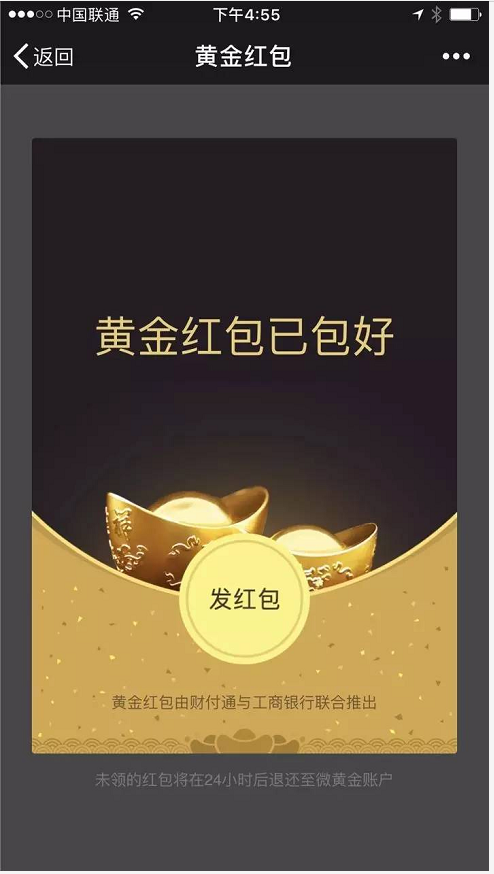 一種新的紅包方式點開則是這樣的“黃金紅包”