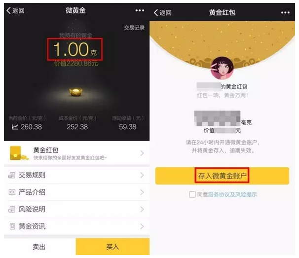 近日,財付通與工商銀行聯(lián)合推出了【騰訊微黃金】(下稱“微黃金”)這一在線黃金交易創(chuàng)新產(chǎn)品?!包S金紅包”是在該平臺基礎上提供的服務。用戶可以將本人持有的黃金份額以紅包的形式轉(zhuǎn)讓給親友,形式表現(xiàn)為“黃金紅包”。