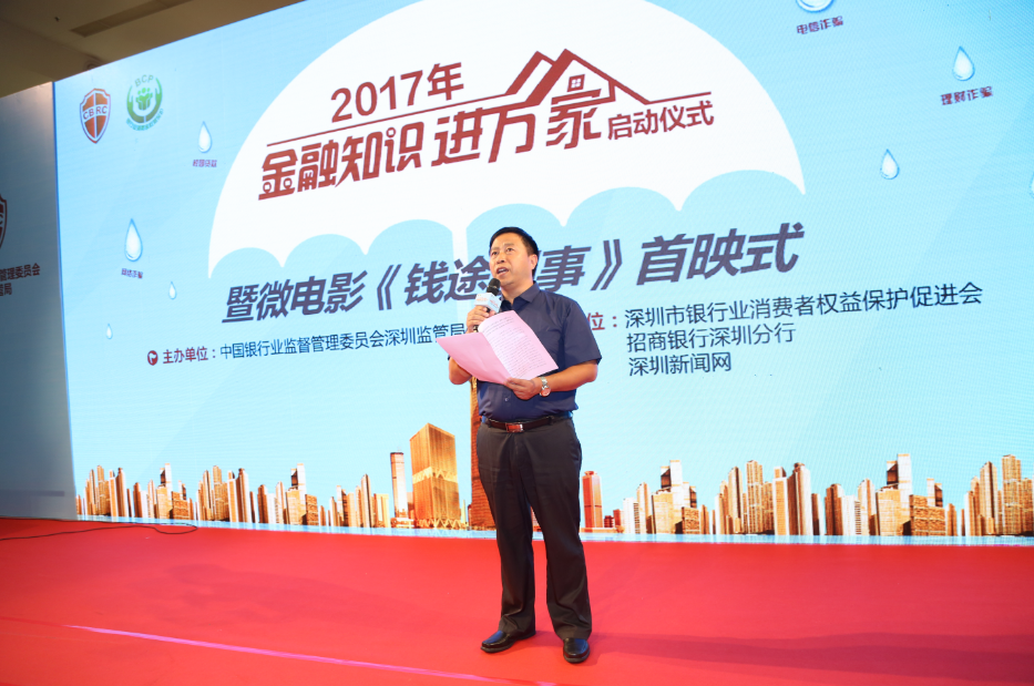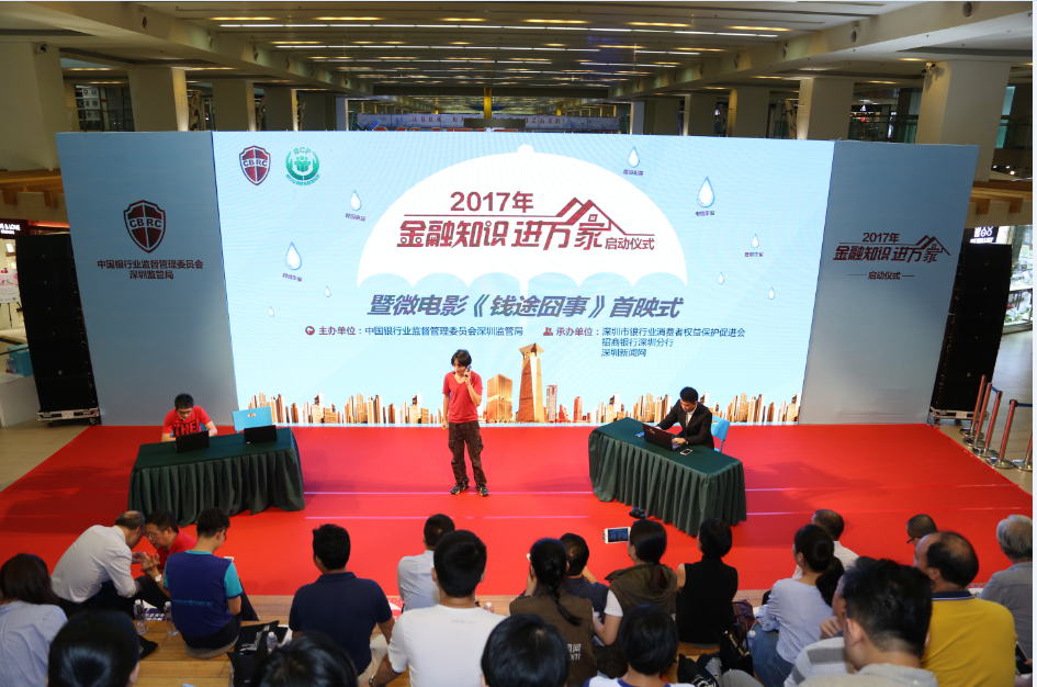 8月27日,為防范金融風險,提升金融服務(wù)水平,深圳啟動2017年度銀行業(yè)“金融知識進萬家”宣傳月活動暨微電影《錢途囧事》首映式。