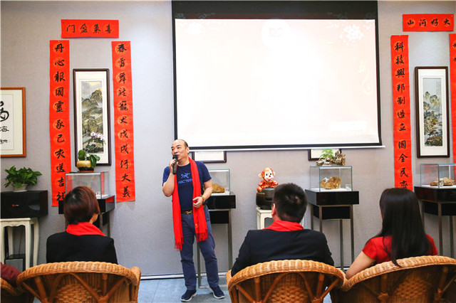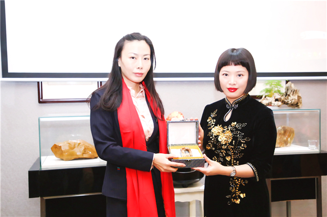 自古書法印章不分家,作品必須蓋印才算完整。本次活動場地提供田黃博物館、希雍天石董事長繆建生為到場嘉賓和校友,受邀分享田黃石科普知識,介紹歷經(jīng)1.8億萬年形成的田黃石種類及特點。  歡聚活動上,田黃博物館特別挑選了一枚“溫、潤、細、膩、凝、潔” 、印面方正碩大,雙龍雕刻立體,栩栩如生的昌化田黃貫斗雙龍印璽,捐贈給文學(xué)社。 收到如此珍貴的禮物,求是文學(xué)社秘書長樓蓉表示:非常感謝田黃博物館的支持與厚禮,后期將委托機構(gòu)對這塊印石義拍或義賣,所得將以求是文學(xué)社和田黃博物館名義,捐贈給公益項目,會讓這一珍貴的禮物,發(fā)揮更多的社會價值。