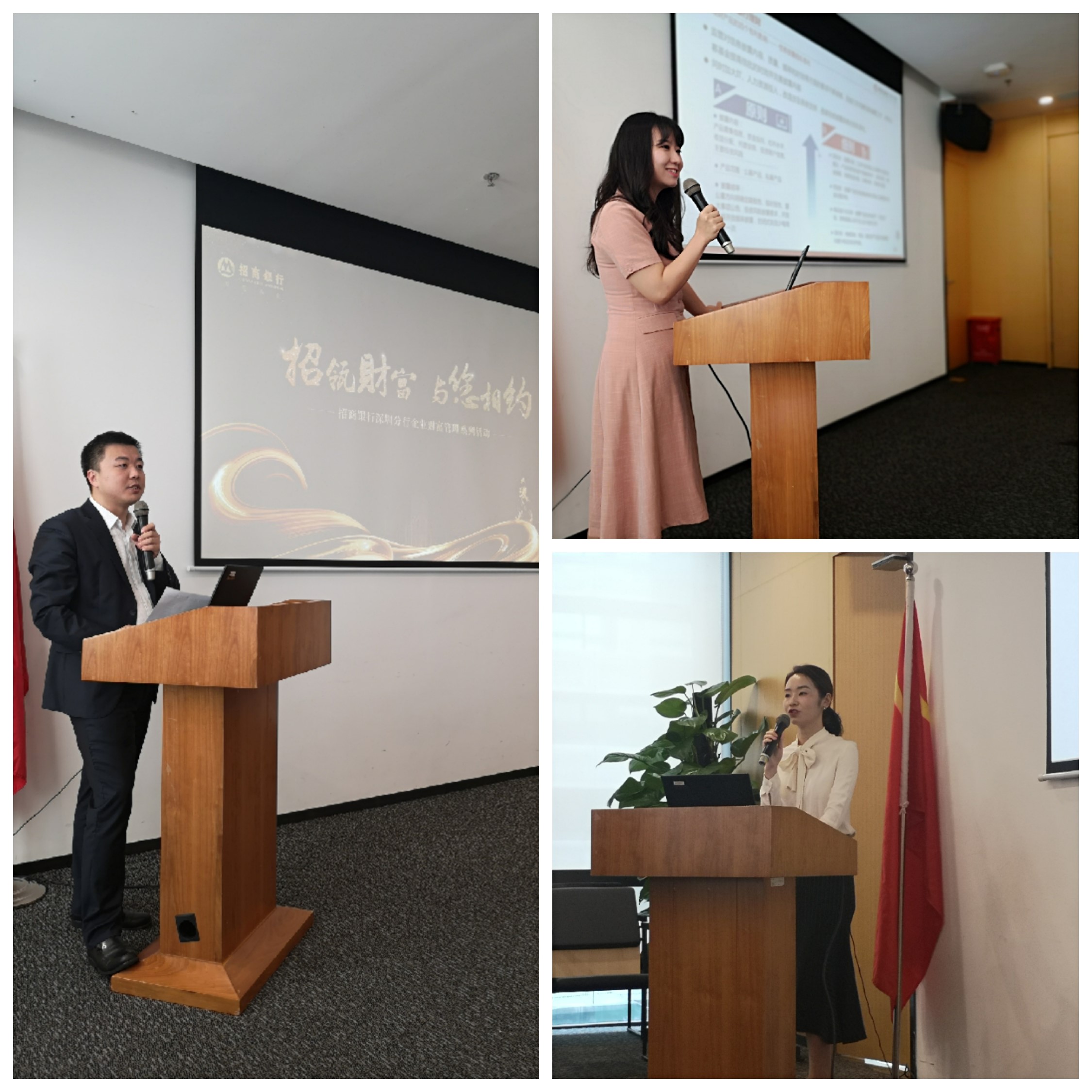 為提升招商銀行企業(yè)財(cái)富管理品牌,夯實(shí)全行企業(yè)財(cái)富管理客群,招商銀行深圳分行于2019年6月21日在分行大廈舉辦了“招瓴財(cái)富與您相約”——企業(yè)財(cái)富管理投資沙龍??傂匈Y產(chǎn)管理部產(chǎn)品總監(jiān)、總行公司金融總部投資顧問出席了活動(dòng)并做專題演講。本次活動(dòng)共重點(diǎn)邀請(qǐng)我行代推介挽回客戶、新拓理財(cái)客戶共30余位企業(yè)客戶參加。