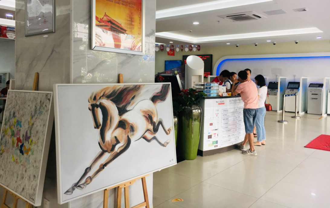 走進(jìn)交通銀行深圳布吉支行,您的目光一定首先會(huì)被陳列廳堂的油畫作品吸引。這些油畫是布吉支行用于精準(zhǔn)扶貧的義賣作品,用來幫助河源市紫金縣禮坑村許大爺家庭。支行精準(zhǔn)扶貧工作已經(jīng)進(jìn)入第三個(gè)年頭,2019年6月,支行利用啟動(dòng)基金向畫商重新購置了油畫作品。新添置的油畫作品擺放于支行大廳,結(jié)合總行廳堂一體化改造,支行廳堂呈現(xiàn)出全新面貌。