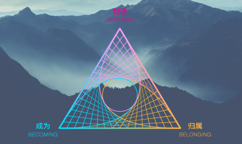 在這兩個維度的基礎(chǔ)上,陳瑋教授增加了Creating“創(chuàng)造”這個維度。Creating“創(chuàng)造”,是我給這個世界留下的精神和物質(zhì)遺產(chǎn),世界因你而變。在成為和歸屬完成之后,人生的使命是創(chuàng)造,是我們給這個世界帶來的更新與升級。當(dāng)我們問,未來會是什么樣?我們真正要問的是:我,將為這個世界創(chuàng)造什么?