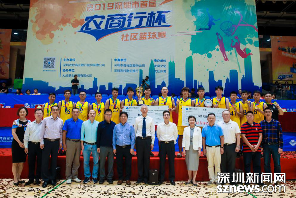 鎂光燈下,公明李松蓢隊(duì)奪得本屆賽事冠軍,觀瀾牛湖隊(duì)榮獲亞軍,羅湖布心隊(duì)奪得季軍。深圳農(nóng)村商業(yè)銀行董事長李光安、行長袁捷,36支社區(qū)球員代表以及深圳農(nóng)村商業(yè)銀行各支行員工,現(xiàn)場共計(jì)200名社區(qū)籃球隊(duì)員及600名觀眾共同見證了這份榮耀。