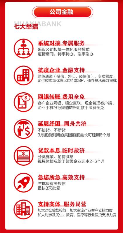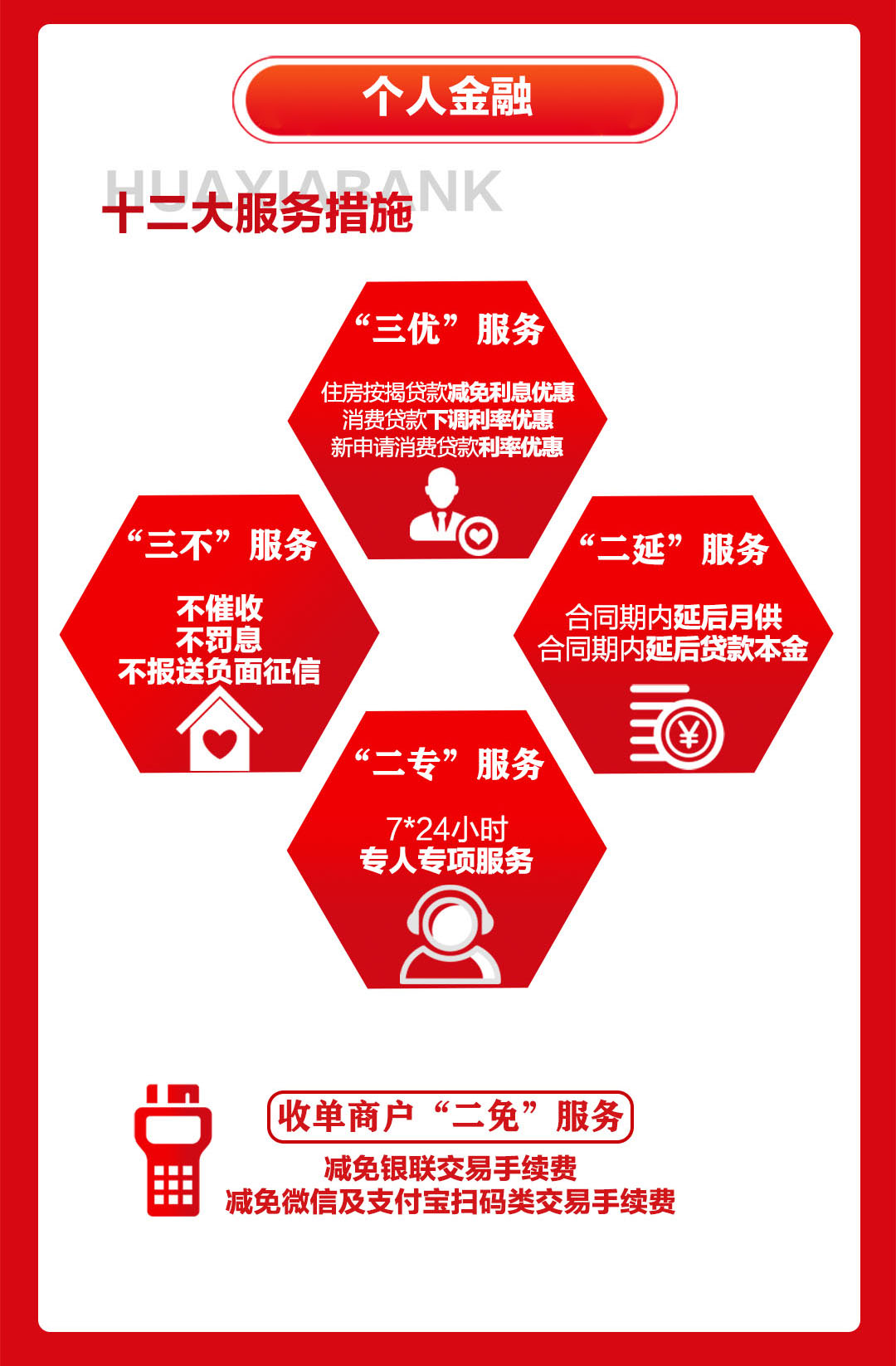 3、個(gè)貸客戶“二延”服務(wù):月供和貸款本金可在合同期限內(nèi)合理延后1-3個(gè)月還款。參加疫情防控救援的醫(yī)護(hù)人員、部隊(duì)官兵、公安干警、政府工作人員,或是受到疫情隔離影響暫時(shí)不能正常上班、失去收入來(lái)源的華夏銀行深圳分行個(gè)貸客戶,深圳分行在收到并核實(shí)客戶遞交的相關(guān)證明材料后,客戶月供和貸款本金可在合同期限內(nèi)合理延后1-3個(gè)月還款。