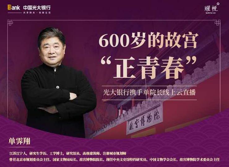 近日,光大銀行深圳分行攜手《深圳新聞網(wǎng)》開展了《光大銀行“開講啦”!》第十二期活動——線上開講精彩講座《600歲的故宮“正青春”》,特邀原故宮博物館單霽翔院長從多個角度闡述中華傳統(tǒng)文化之美。