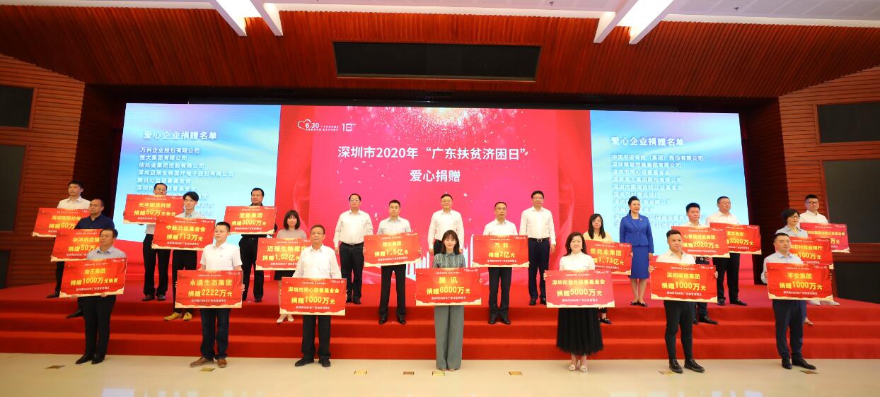 見圳客戶端·深圳新聞網(wǎng)2020年7月2日訊 近日,深圳市舉辦了2020年“廣東扶貧濟困日”活動。該活動以“決戰(zhàn)脫貧攻堅,助力鄉(xiāng)村振興”為主題,旨在鼓勵社會各界深入貧困地區(qū),為脫貧攻堅共同出力?;顒赢?dāng)天,深圳農(nóng)村商業(yè)銀行(以下簡稱“深圳農(nóng)商行”)與萬科、恒大、平安集團、鑫榮懋集團等多家愛心企業(yè)一同參與了現(xiàn)場舉牌認捐,連續(xù)三年累計認捐300萬元,積極踐行慈心善行。
