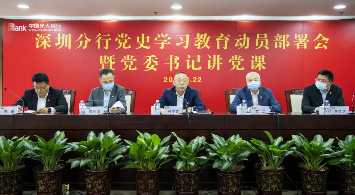 深圳新聞網(wǎng)·見圳客戶端2021年3月23日訊 知其史方能激其志,激其志方能盡其責。昨日,光大銀行深圳分行舉行黨史學習動員部署會暨黨委書記講黨課,學習貫徹習近平總書記在黨史學習教育動員大會上的重要講話精神和李曉鵬董事長集團黨史學習教育動員部署會講話精神。分行黨委書記、行長韓學智全面動員部署黨史學習教育工作,并講《學習中共黨史 牢記使命擔當—中國共產(chǎn)黨從“一大”到“三大”的歷史沿革》專題黨課。分行黨委委員、紀委書記方眾主持會議并對《深圳分行黨委黨史學習教育工作方案》進行了宣講和具體工作部署,分行領(lǐng)導(dǎo)班子成員和全體中層干部共160多人參加會議。