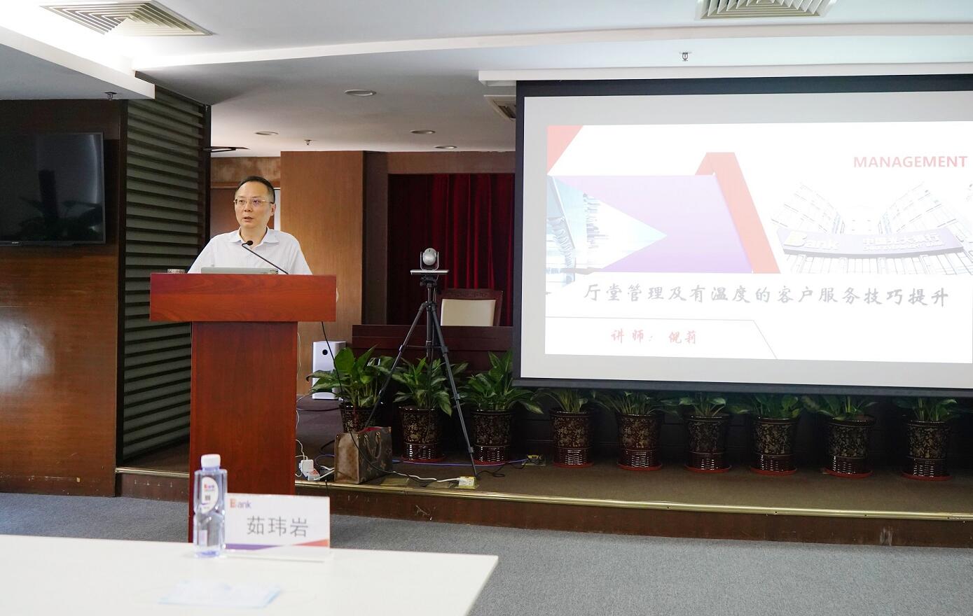 深圳新聞網·見圳客戶端2021年5月27日訊 今日,光大銀行深圳分行成功舉辦“廳堂管理及有溫度的客戶服務技巧提升”第一期專題培訓,各支行大堂經理及大堂助理共50余人參加培訓。培訓強化了員工對大堂崗位的認識和理解,進一步提升了廳堂人員服務工作意識與質量,是深圳分行陽光服務工作邁入新階段的一個里程碑。