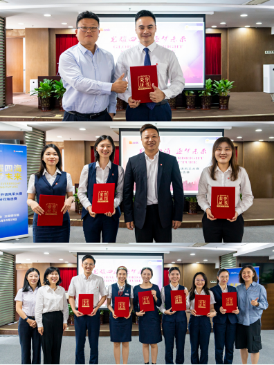 分行黨委委員、副行長宋綱、黨委委員劉晨鵬及參會的對公條線各部門負(fù)責(zé)人分別向優(yōu)秀獲獎?wù)哳C獎。