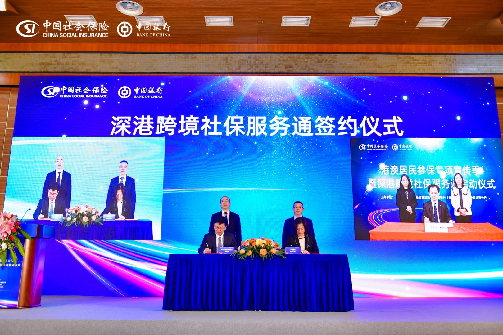 啟動儀式上,深圳市社保局與中銀香港、深圳中行簽訂合作協(xié)議,通過社銀合作,社?,F(xiàn)場服務首次跨境走進香港,香港居民能夠在“家門口”暢享優(yōu)質、高效、便利的深圳社保服務,正式開啟了深港社??缇撤招戮置妗?2月2日起,符合條件的港澳居民可在中銀香港指定網(wǎng)點申請靈活就業(yè)和城鄉(xiāng)居民養(yǎng)老保險參保登記業(yè)務。