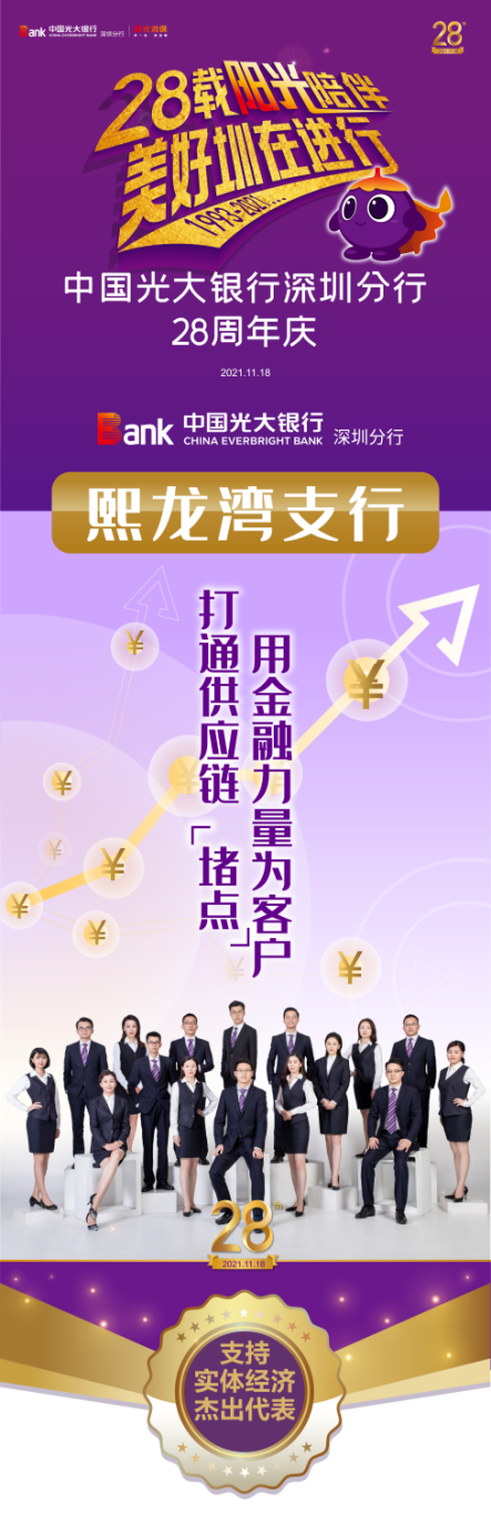 該支行始終秉承“客戶滿意,追求卓越”的價(jià)值觀,用金融力量為客戶打通供應(yīng)鏈“堵點(diǎn)”,與一大批優(yōu)質(zhì)企業(yè)建立了良好的合作關(guān)系。截止2021年11月,支行在分行內(nèi)對公客戶數(shù)量排名靠前。因此,在深圳分行28周年“十大最美光陰故事”評選中,熙龍灣支行榮獲支持實(shí)體經(jīng)濟(jì)杰出代表。