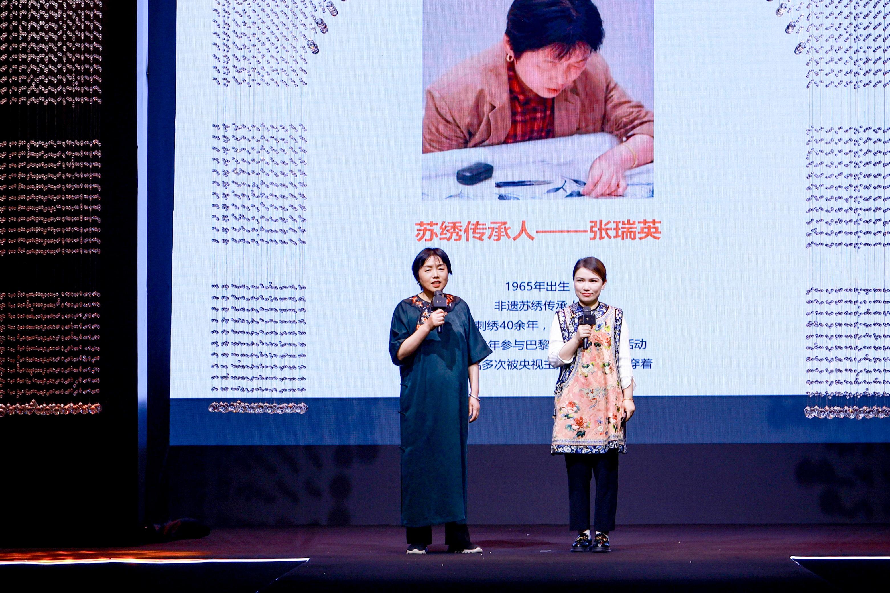蘇繡傳人張瑞英現場進行了蘇繡文化講解,讓非遺傳承技藝再上舞臺,將非遺元素運用在當代的生活方式中,展現非遺文化非同尋常的光芒之處,傳播非遺重要傳承內核,用服裝承載國風文化,傳遞中國風采。當以蘇繡手藝復刻的百年服飾再現于秀場,傳統(tǒng)技藝真實演繹“經典永流傳”,彰顯了傳承中國文化的手工技藝“奢侈品”含義。