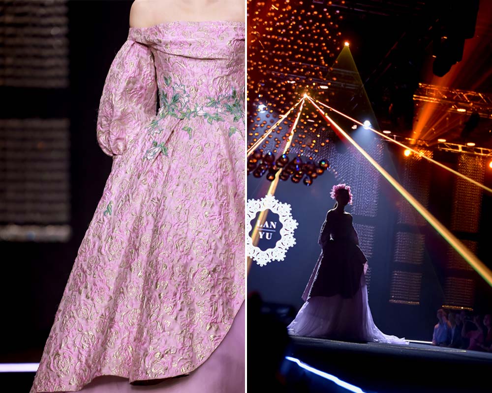 值得一提的是,LANYU品牌帶來了歷屆發(fā)布經典系列中的代表作品,展出設計融合了蘇繡藝術的經典手工技藝特色及現代時裝設計的新鮮潮流之美,綻放出了美輪美奐的視覺藝術效果,國風文化與國際時尚撞了個滿懷,讓現場觀眾贊嘆不已。