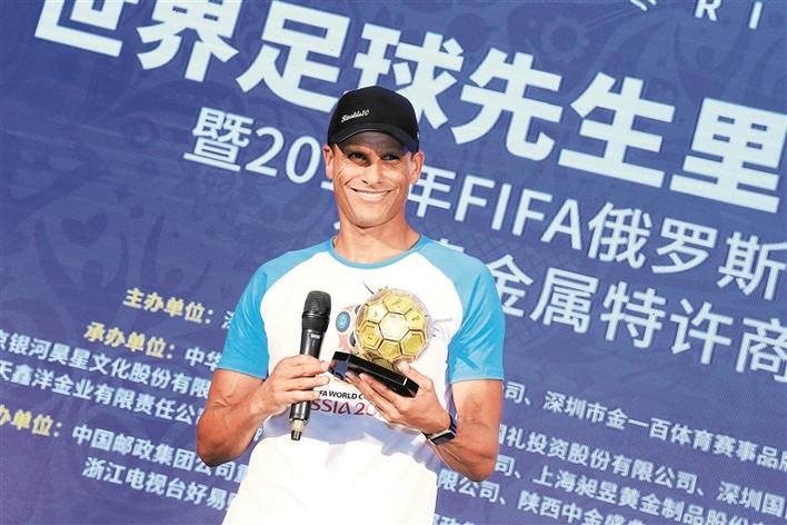 昨日,“走向巔峰”世界足球先生里瓦爾多中國行暨2018年FIFA俄羅斯世界杯大中華區(qū)3D貴金屬特許商品發(fā)布會在深圳舉行。