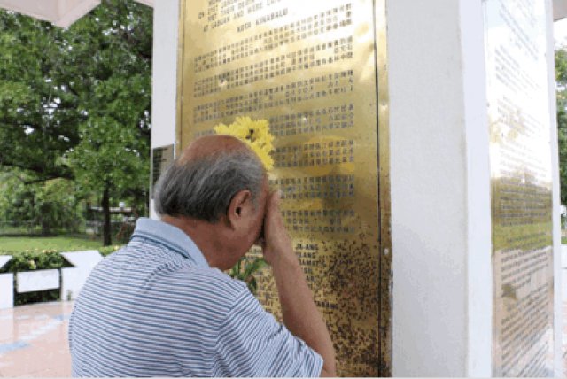 2018年6月22日,我攜兒子宇懷及侄子道存、洪濤一行四人踏上萬(wàn)里尋親之旅,遠(yuǎn)涉重洋,飛抵沙巴。抵后連日驅(qū)車走訪烈士后裔、尋找知情華僑老人、憑吊當(dāng)年舊戰(zhàn)場(chǎng)Inanam大橋、瞻仰游擊隊(duì)大本營(yíng)Menggatal文茜坑、參訪中國(guó)駐哥打基納巴盧總領(lǐng)事館,拜見(jiàn)梁才徳總領(lǐng)事、劉雅楠領(lǐng)事。6月24日上午,在《北婆羅洲抗日神山游擊隊(duì)》紀(jì)實(shí)文學(xué)作者陳冬和先生和83歲高齡的抗日烈士后裔石硯田老先生的陪同下,一行來(lái)到肅穆的神山游擊隊(duì)紀(jì)念公園。公園正面牌樓的“神山游擊隊(duì)紀(jì)念公園”名,白底黑字,分別用中、英、馬來(lái)文書寫,顯得格外莊重醒目,門樓上飄揚(yáng)著馬來(lái)西亞國(guó)旗,烈士紀(jì)念碑巍然矗立于公園中央,碑前廣場(chǎng)瓷磚鋪就,廣場(chǎng)中間有一片用砌磚圍著的長(zhǎng)方形草坪,據(jù)說(shuō)是當(dāng)年烈士遇害的大土坑,戰(zhàn)后被填平,上面綠草如茵,地下掩埋著哥哥張桂有等176位神山游擊隊(duì)英烈遺骸。紀(jì)念碑的四周銅牌鑲嵌,正面鐫刻著176位烈士的英名,其余三面是中、英、馬來(lái)三種文字銘刻的碑記。當(dāng)我在烈士紀(jì)念碑上找到哥哥張桂有的名字,不禁百感交集,久久伏碑,撫摸著張桂有三個(gè)漢字,壓抑已久的眼淚再也控制不住,奪眶而出,抱碑嗚咽!75年了,終于找到了多年思念尋覓的親人!哥哥當(dāng)年與鬼子英勇拼殺的激烈場(chǎng)面、慷慨就義的壯烈情景一幕幕浮現(xiàn)在面前。我們?cè)诩o(jì)念碑前獻(xiàn)上鮮花,深深鞠躬默哀,深切悼念我的家兄張桂有和他的戰(zhàn)友們。我想此時(shí)此刻,哥哥和戰(zhàn)友們的英靈一定在冥冥里接受我們的祭奠。