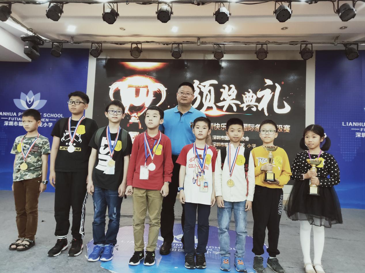 福田區(qū)蓮花小學(xué)校長王華斌先生為獲獎(jiǎng)棋手頒獎(jiǎng)