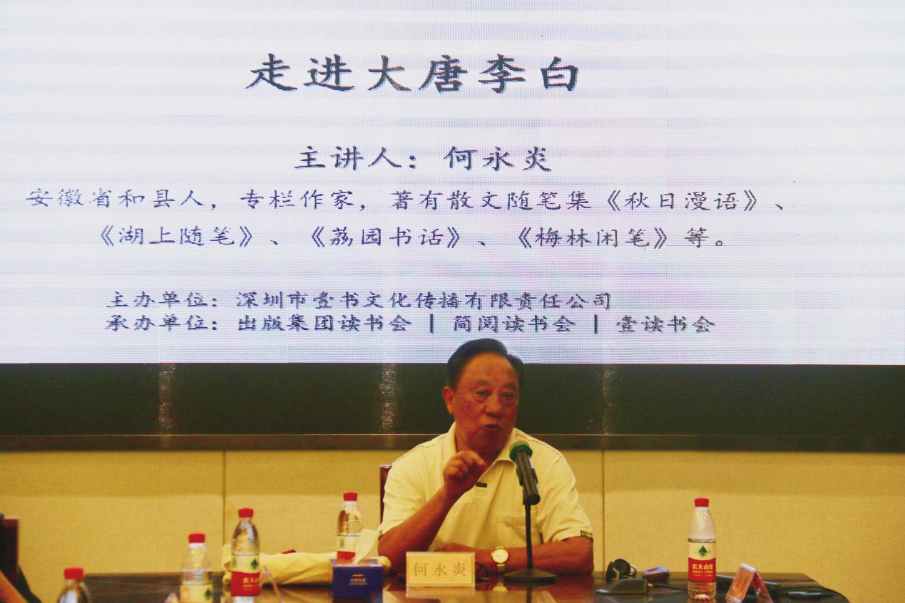 此次公益文化講座特邀專欄作家何永炎先生擔任主講嘉賓,講述大唐李白傳奇的人生歷程。李白是唐代偉大的浪漫主義詩人,被后人譽為“詩仙”,他的詩雄奇飄逸、意境絕妙,藝術(shù)成就極高,對后世產(chǎn)生深遠影響。何永炎先生從李白的生平談起,梳理其政治上的失意、生活理想上的受挫經(jīng)歷,引用其展現(xiàn)生活狀態(tài)的千古名篇,讓全場聽眾深切體會這位詩人內(nèi)心的痛苦與豪邁。