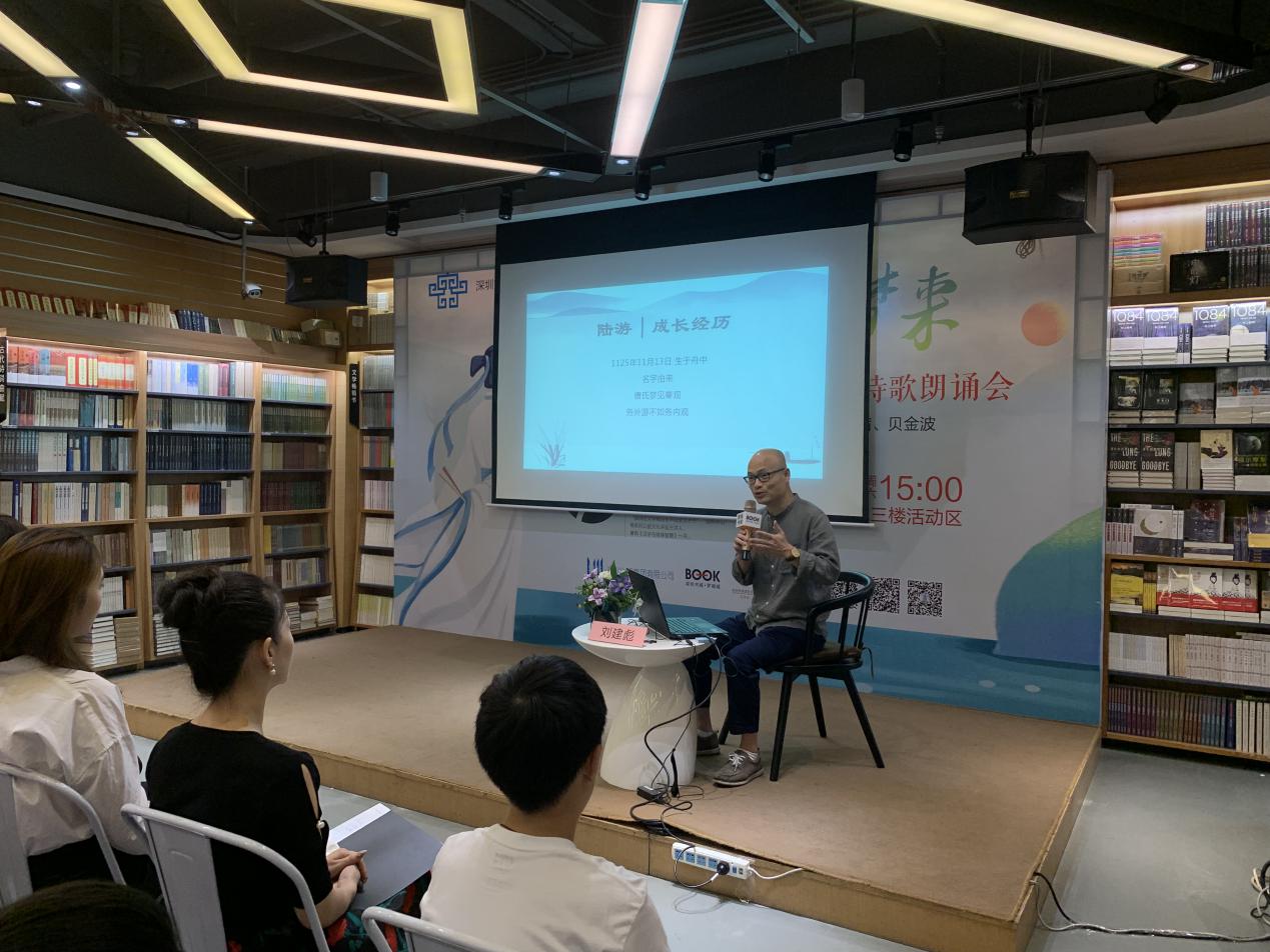 深圳新聞網(wǎng)訊 9月21日下午,由深圳市宣傳文化事業(yè)發(fā)展專項基金資助的“新時代中華優(yōu)秀傳統(tǒng)文化進(jìn)社區(qū)”項目之“鐵馬冰河入夢來”陸游愛國詩詞公益講座暨陸游愛國詩詞朗誦會在羅湖書城三樓活動區(qū)成功舉辦。本次活動由深圳市壹書文化傳播有限責(zé)任公司、深圳書城羅湖城共同主辦,壹書閱讀推廣人、愛詩家創(chuàng)始人劉建彪先生擔(dān)任主講嘉賓。活動尚未開始,現(xiàn)場已座無虛席,觀眾們對講座充滿了期待,更有小朋友們朗誦起了陸游的名句。