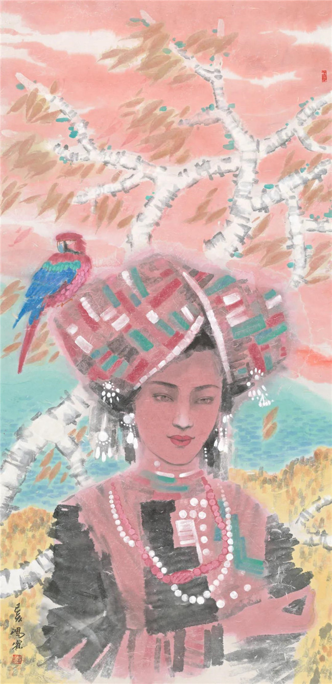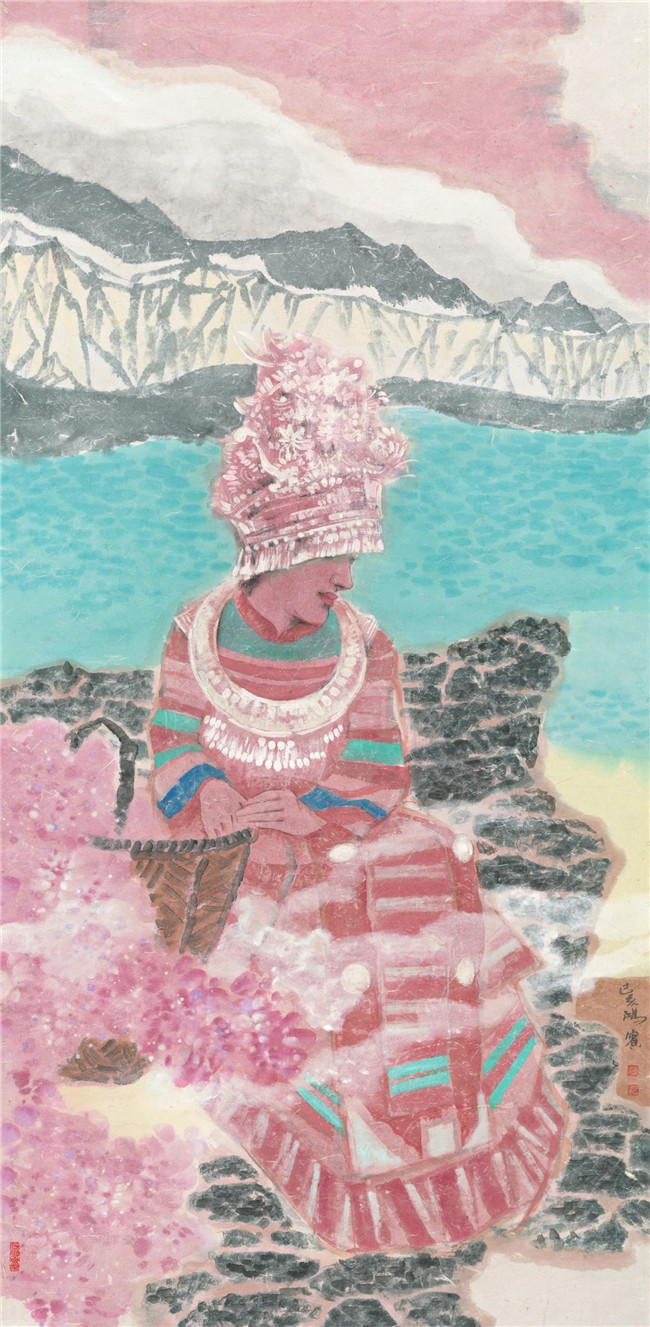 傈僳少女 彩墨 136X68cm 2019年