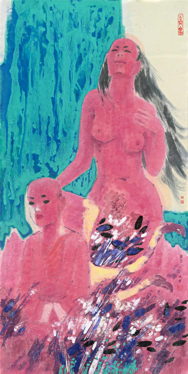 高山上的舞蹈 彩墨 136X68cm 2020年