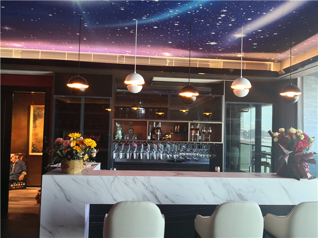 樊鴻賓美術(shù)館座落在珠海市香洲區(qū)內(nèi),旁接情侶路,目眺鳳凰灣,一派浪漫情調(diào),真是一塊滋養(yǎng)藝術(shù)的風(fēng)水寶地。展館所在的天宸大廈十六樓。面朝大海,視野開闊,藍(lán)天白云,碧海揚(yáng)帆,讓人心曠神怡。與此同時(shí),室內(nèi)樂聲輕伴、紅酒飄香,此景、此情映襯之下,緩步巡看展品,或細(xì)細(xì)靜賞佳作,自然而然有一份莫名舒適的藝術(shù)享受。