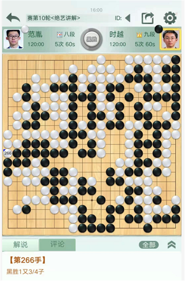 第一臺,快棋,戎毅執(zhí)白勝陳豪鑫。黑棋開局在右邊以及中盤在左上的下法略嫌松緩,白領(lǐng)先。之后黑棋沖擊白棋中央致使左邊形成打劫,白棋簡明處理后以較大優(yōu)勢進入官子。最后黑棋為了強撐一目棋在自己空里出現(xiàn)打劫,在黑棋需要找很損的劫材時候黑方認(rèn)輸。