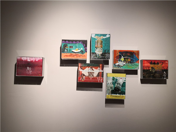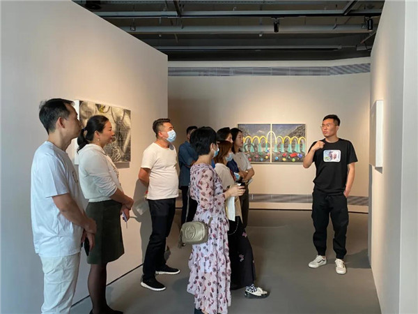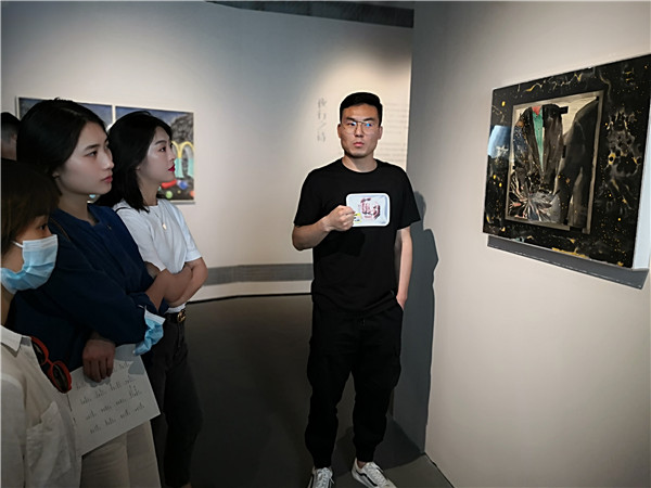 聯展現場三位作者向參觀者介紹創(chuàng)作經歷及畫作意蘊。