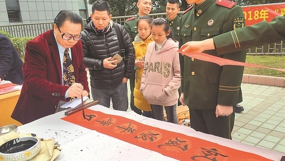 2月5日上午10點,由深圳市雙擁辦主辦,中藝馨書畫院承辦的深圳市2018年“喜迎新春翰墨擁軍”書畫進軍營活動走進深圳公安邊防六支隊家屬大院,為官兵、軍屬們送去新春祝福。