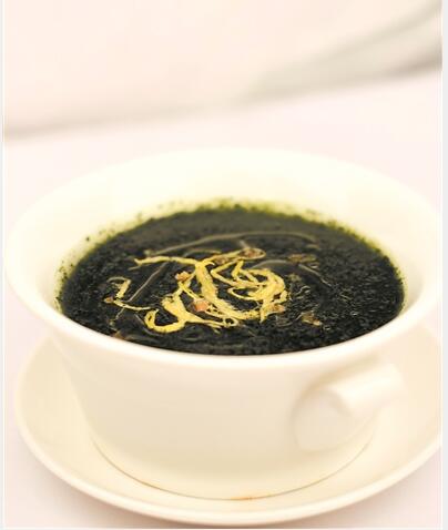首先將菠菜飛水,再用料理機(jī)打成蓉,可以整棵菠菜放入料理機(jī),不會(huì)浪費(fèi)“紅根”。然后在平底鍋用豬油將菠菜蓉推開,最后放入雞湯煮沸,加入幾片火腿絲就可以上桌。為什么要加入豬油呢?周師傅解釋說,因?yàn)椴げ巳绻环庞偷脑?會(huì)比較“糠”(粵語),用豬油推開后羹就變得又滑又香。