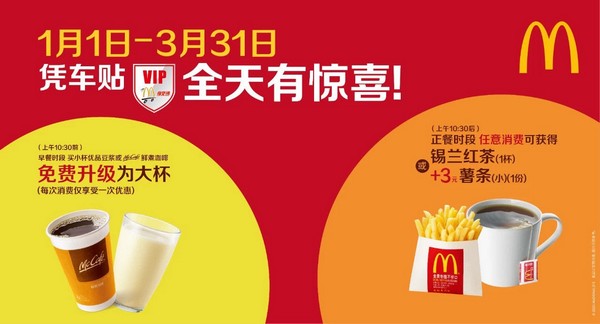 開車取餐少接觸,麥當(dāng)勞“得來速”餐廳讓駕車的顧客購(gòu)餐更方便、安全且快速。駕車者不用下車,在餐廳車道的窗口即可完成點(diǎn)餐、付款和取餐?,F(xiàn)在免費(fèi)領(lǐng)取 VIP車貼享福利,3月31日前,早餐時(shí)段購(gòu)買小杯優(yōu)品豆?jié){或鮮煮咖啡可免費(fèi)升杯;正餐時(shí)段任意消費(fèi)即贈(zèng)錫蘭紅茶,或者加3元換一份小薯?xiàng)l。(常軍平)