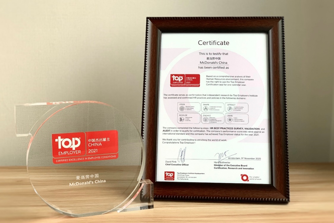 見圳客戶端·深圳新聞網2021年1月27日訊(記者 常軍平)近日,麥當勞中國榮獲杰出雇主調研機構(Top Employers Institute)的“中國杰出雇主2021”認證。在充滿挑戰(zhàn)的2020年,麥當勞中國秉持“我們就相信年輕人”的雇主品牌理念,憑借為年輕人持續(xù)提供優(yōu)質的就業(yè)機會和職業(yè)發(fā)展支持而獲此殊榮;這也是麥當勞中國第十一次獲得這一認證。