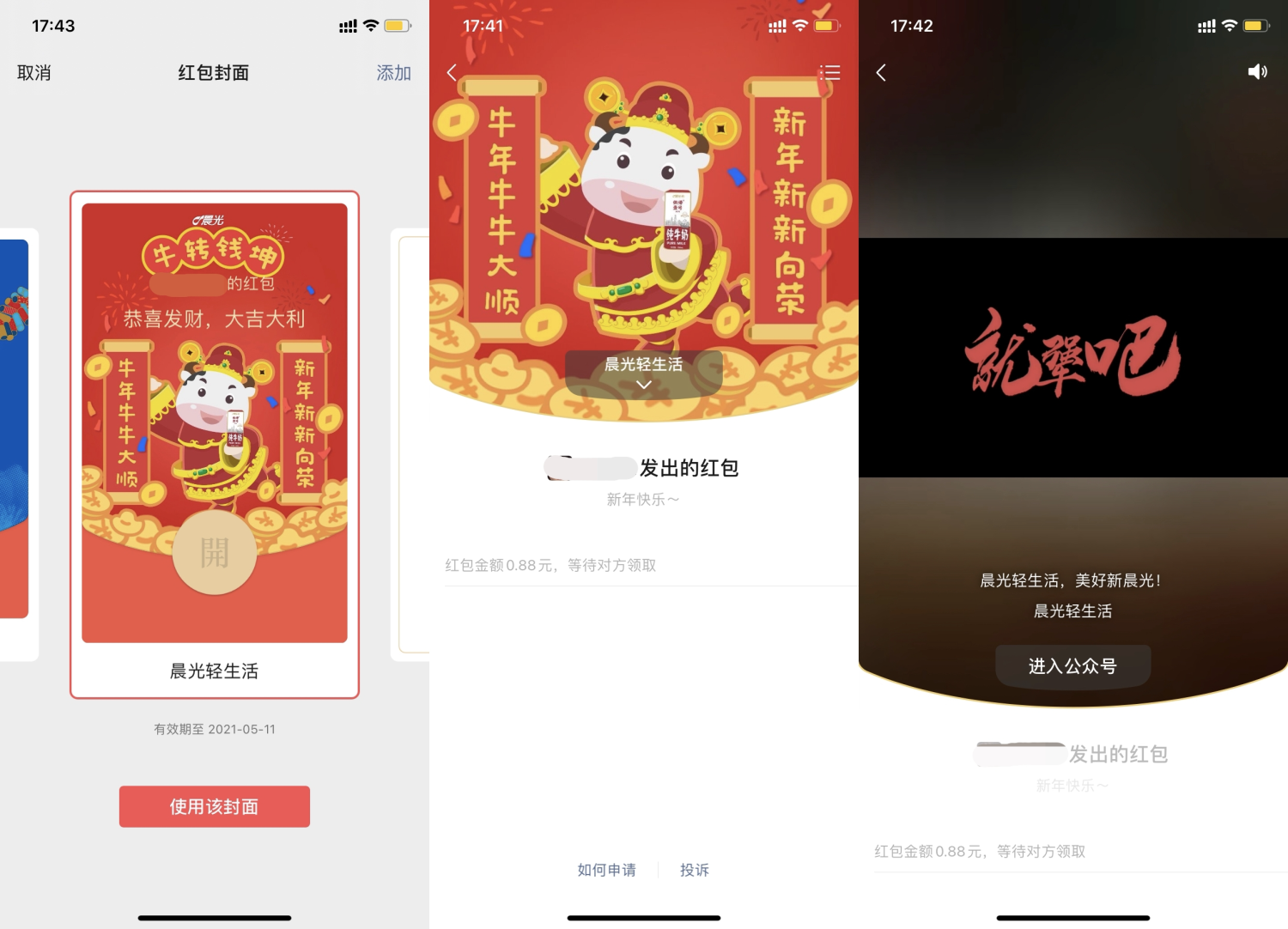 2021年的春節(jié)線上定制紅包封面成為網民熱議的話題,相較于往年的春節(jié)紅包,各具特色、風格不一的紅包封面無疑是今年最明顯的特色了。晨光乳業(yè)也為此做出了嘗試,針對晨光牛奶用戶和粉絲大膽設計,將憨態(tài)可掬的品牌IP放置在封面C位。無疑,這波寵粉操作有助晨光牛奶獲得更多粉絲的點贊,增強用戶粘度。