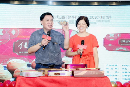 佳寧娜食品深圳首席品牌官及運營總監(jiān)潘小兵在活動現(xiàn)場講解2021年熱銷月餅