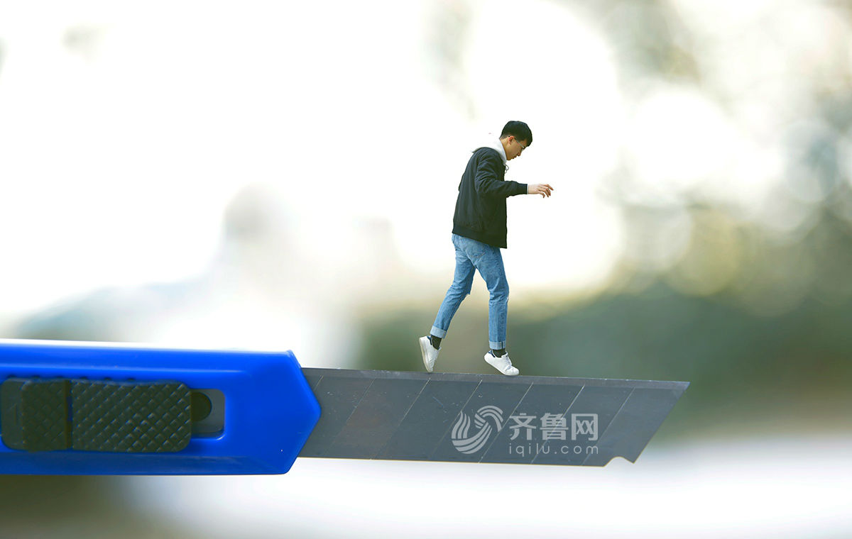 創(chuàng)意攝影展示初入職場大學(xué)生 刀刃行走