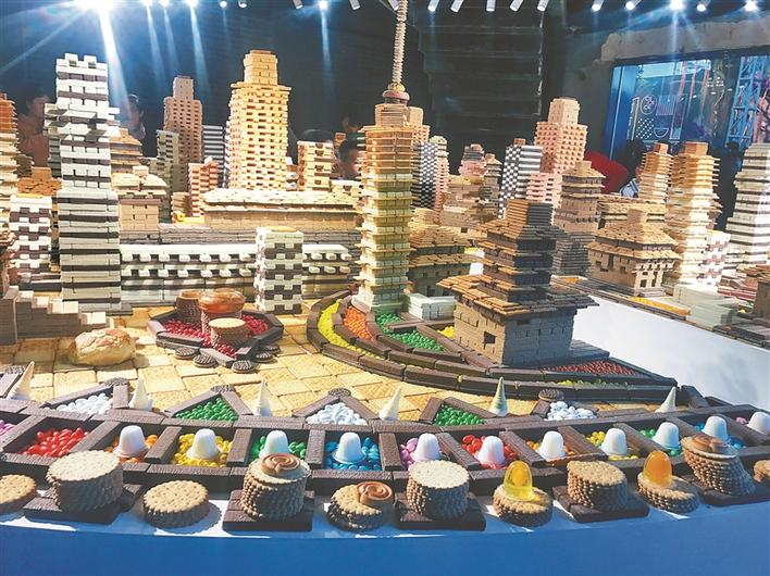 由10萬塊餅干和糖果搭建的“童話小鎮(zhèn)”。