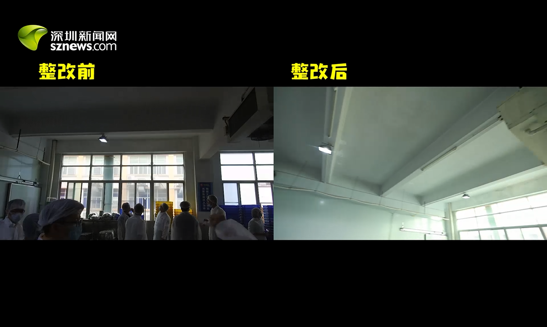 29日突查發(fā)現(xiàn),粗加工間“墻壁漏水長(zhǎng)霉”“地面積水潮濕”。今日深圳新聞網(wǎng)回訪發(fā)現(xiàn),漏水和發(fā)霉部位已整改完畢,墻面未發(fā)現(xiàn)漏水和發(fā)霉現(xiàn)象。