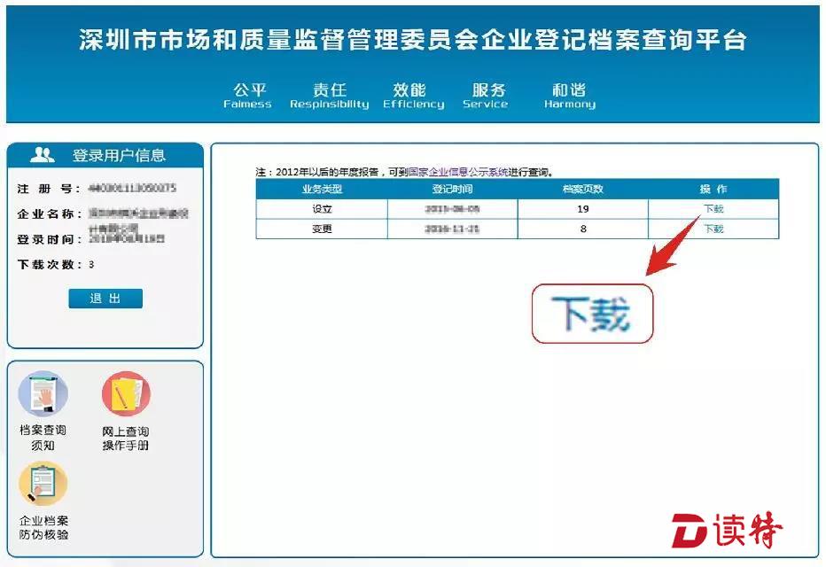驗證成功后,電腦顯示進(jìn)入查詢頁面,顯示與登錄人有關(guān)的企業(yè)名稱。點(diǎn)擊要查詢檔案的企業(yè)名稱,顯示列出“企業(yè)登記檔案”。