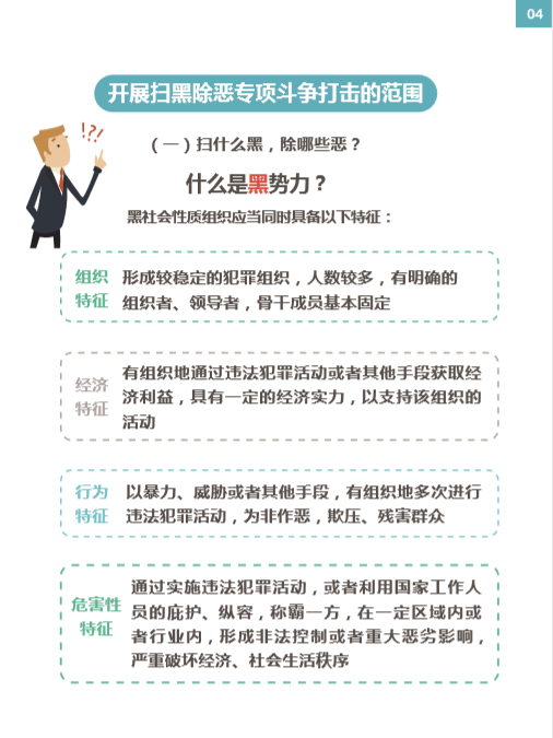掃黑除惡普法“口袋書”是一本“普法書”,內(nèi)容共涉及11大類,分別是開展掃黑除惡專項(xiàng)斗爭(zhēng)的重大意義、總體要求、目標(biāo)任務(wù)、基本原則、打擊的范圍,以及掃黑除惡宣傳標(biāo)語(yǔ)、宣傳海報(bào),掃黑除惡進(jìn)行時(shí),深圳市掃黑除惡專項(xiàng)斗爭(zhēng)舉報(bào)獎(jiǎng)勵(lì)辦法,深圳市掃黑除惡辦關(guān)于市、區(qū)、各行業(yè)掃黑除惡專項(xiàng)斗爭(zhēng)舉報(bào)電話的公告,涉黑涉惡類犯罪相關(guān)罪名及法律條文?!翱诖鼤笔且槐尽懊靼讜保詧D文相結(jié)合的方式,內(nèi)容提綱挈領(lǐng),語(yǔ)言精煉,通俗易懂,把掃黑除惡專項(xiàng)斗爭(zhēng)的有關(guān)法律、政策法規(guī)進(jìn)行準(zhǔn)確、細(xì)致的解讀,明明白白地交給市民。“口袋書”又是一本“方便書”,版式設(shè)計(jì)活潑,書體輕便,可隨身攜帶,方便閱讀。