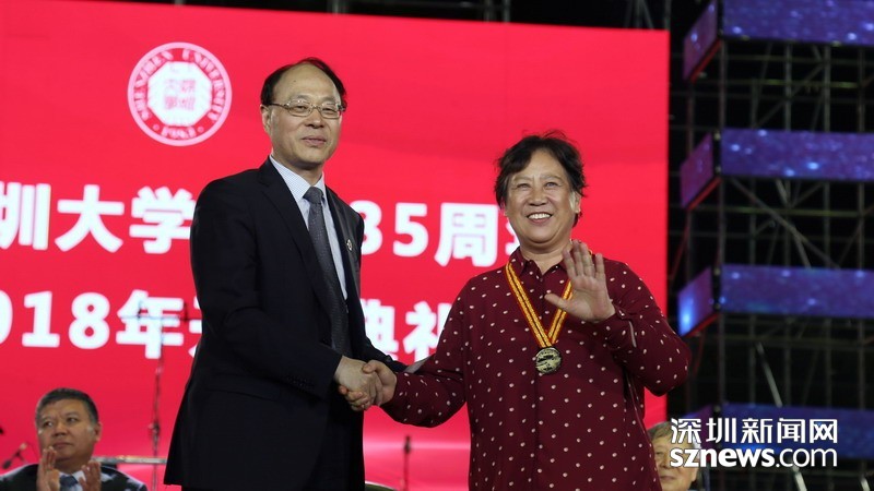 深大黨委書記劉洪一為榮休獎杰出貢獻獎獲得者代表鄭易之教授頒獎